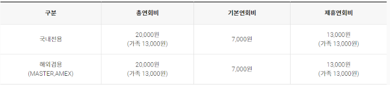 3종류 모두 연회비는 2만원으로 동일 합니다.